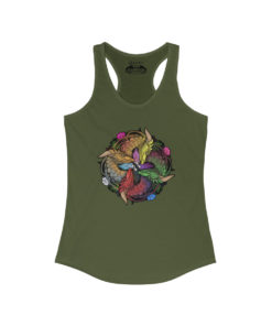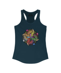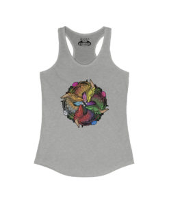 A high-quality print of this slim fit tank-top will turn heads. Bystanders won’t be disappointed – the racerback cut looks good on any woman’s shoulders.